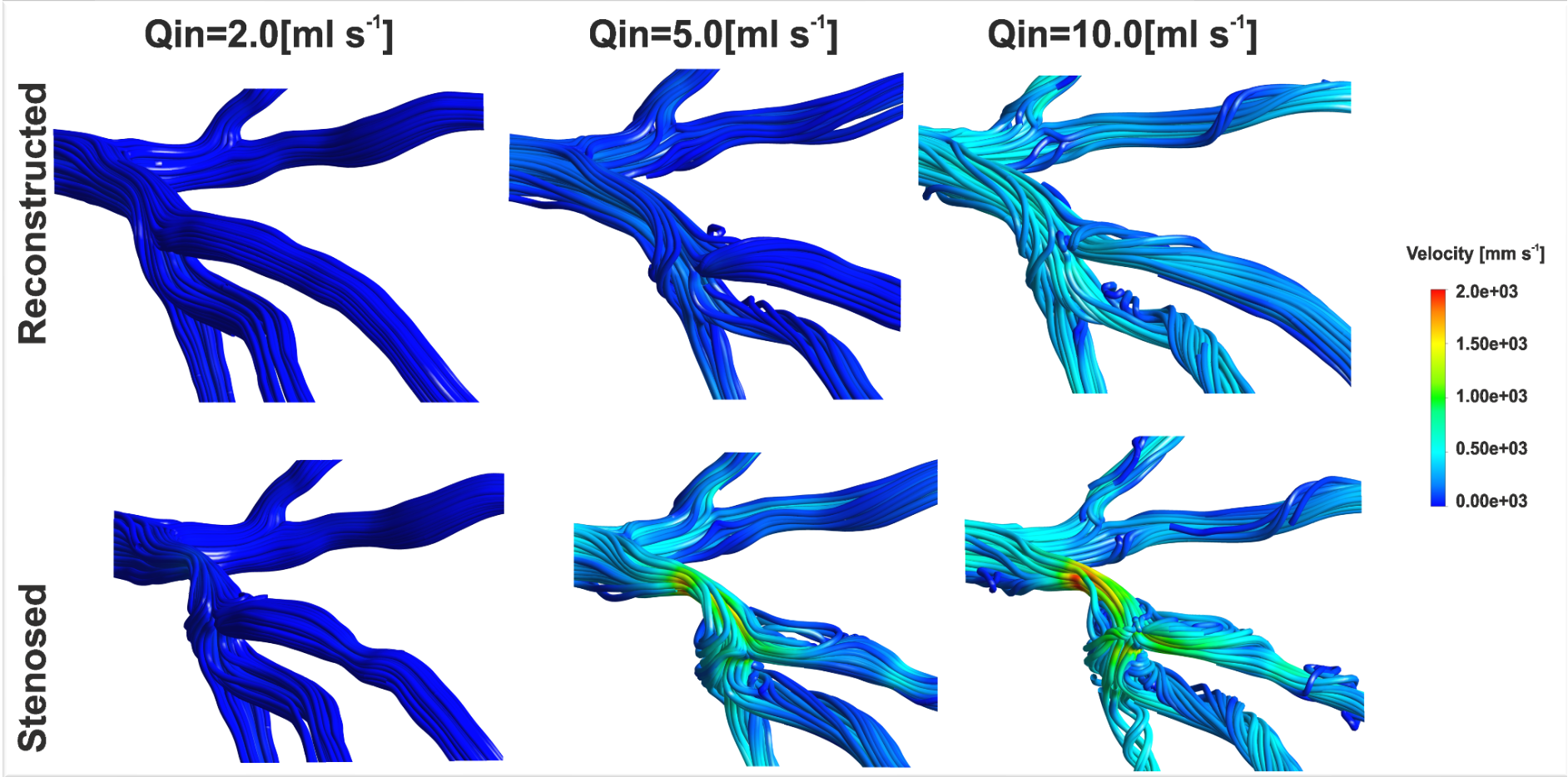• images of FFRSTEN and FFRREC distribution, the Fractional Flow Reserve calculated as the ratio of average total pressure measured in stenotic model after the stenosis vessel in the distal section of the to the average pressure in the aorta, for stenotic and reconstructed models respectively.