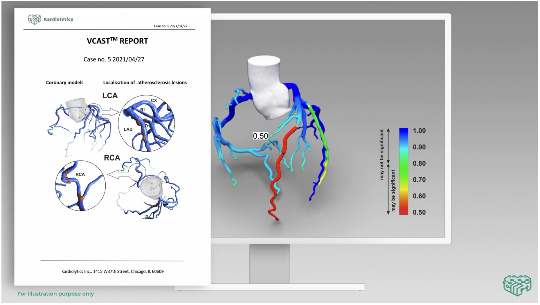 The Virtual Cardiac Stress Test (VCAST) developed by Kardiolytics Inc. is another advancement in this area. It offers an automatic CT analysis workflow that can be handled by the physician with very limited support from the radiologist, comprehensive volumetric analysis consisting FFRct and EFR which supports clinical decisions, and plaque analysis including classification, and volume quantification.